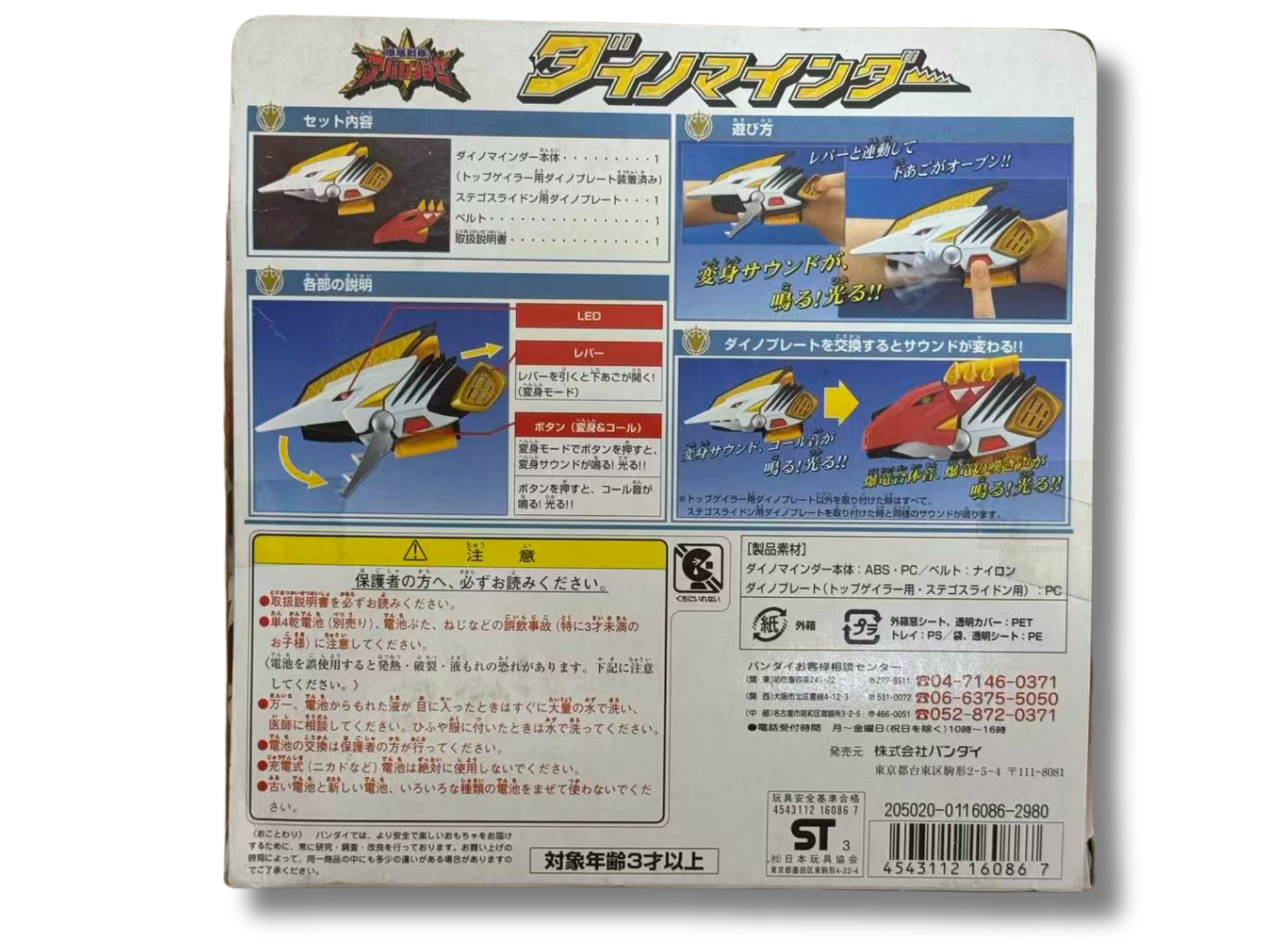 【Product Overview】 From the 2003 Super Sentai series "Bakuryu Sentai Abaranger" (adapted as Power Rangers Dino Thunder), this is the exclusive transformation device for Abare Killer: the DX Dino Minder. It features the "Dino Guts" lever action, triggering intense sound and light effects similar to the show. Set the included Dino Plate to simulate the transformation into Abare Killer!